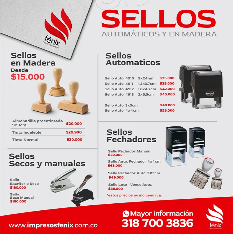 En Impresos Fénix personalizamos los mejores sellos para fortalecer la imagen de tu empresa. Te ofrecemos la más alta calidad y garantía en los materiales de fabricación así como en las tintas de impresión.
